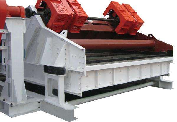 在入料端有一較大的斜坡篩面,隨后緊接著以一定數(shù)目的角度逐級下降,直到出??跒橹?,入料端的斜坡篩面可使更多的物料通過篩面時有較高的篩分速度和較薄的物料分層。因?yàn)榇髩K物料較快地穿過陡坡,這種較早地分層使細(xì)的顆粒更快的靠近篩面,能相對不受阻礙地通過縫隙。